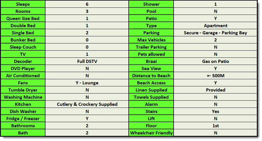 A Beautiful and Modern 3 Bedroom - 6 sleeper, (Including Children), Unit in St Michaels on the Natal South Coast. La Carona 3 unit consisting of 3 Bedrooms & 2 Bathrooms.