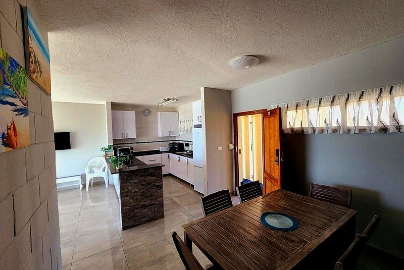 The flat features a small balcony, 2 bedrooms, a living room and a well-equipped kitchen.